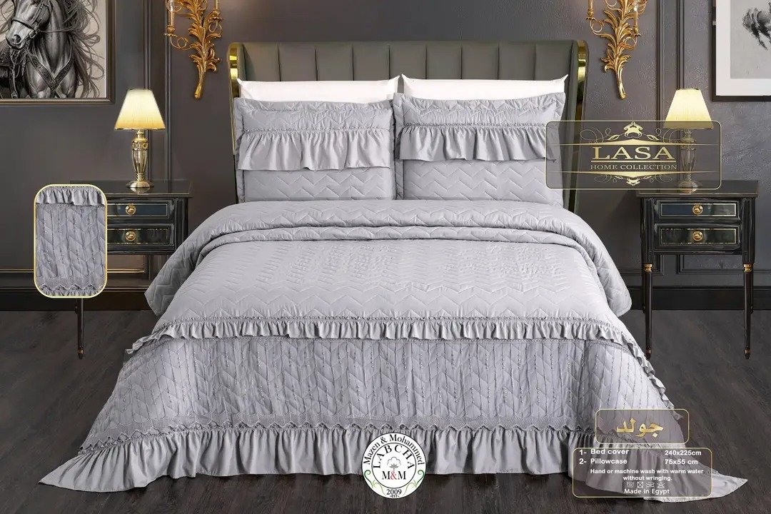 Transform your bedroom into a luxurious sanctuary with the LASA Gold Edition. This premium bedding set is the perfect marriage of modern comfort and classical sophistication. Designed with an intricate “V-shaped” quilted pattern and delicate ruffle accents, it offers a high-end, tailored look that fits perfectly in master suites or bridal bedrooms.